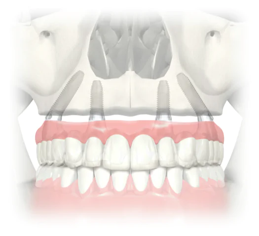 • 4, 6 of soms 8 implantaten voor een volledige vaste brug.